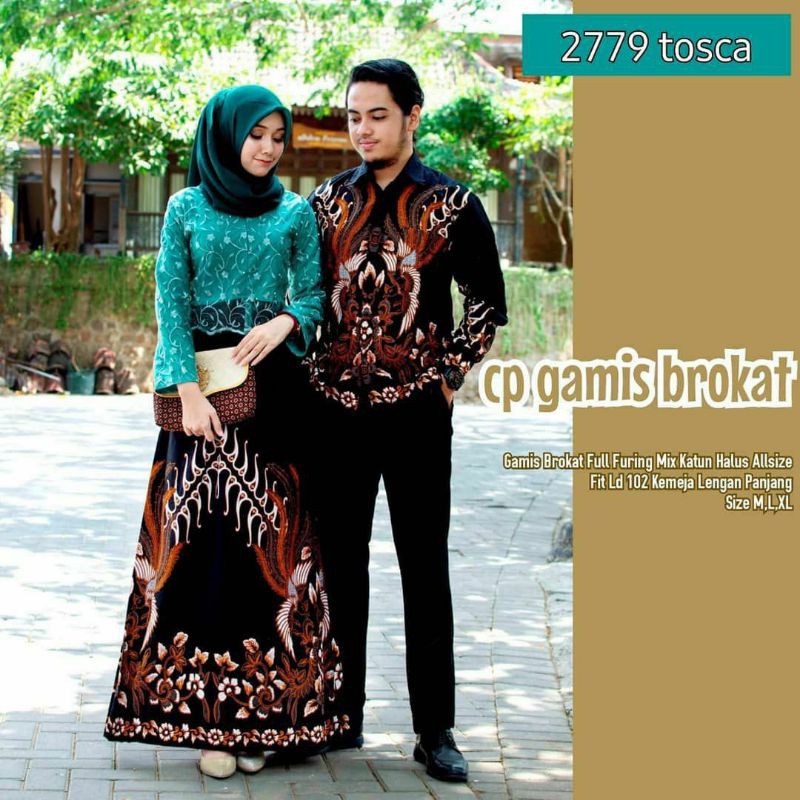 Ada baju kondangan muslim syar'i couple pernikahan brokat batik terbaru. Lingkar dada 106 cm panjang dress 137 cm. Gambar gamis couple, via instagram@butikdeha. Salah satu inovasi ini adalah dengan membuat gamis couple berbahan brokat. Ada yang bisa mencapai 3,6 meter pada bagian roknya.